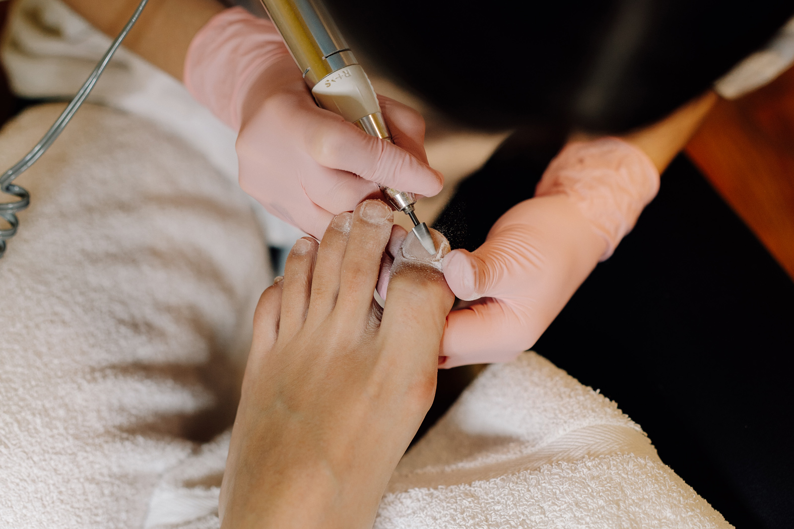 Ošetření nehtového lůžka: Kutikula a přebytečná kůže kolem nehtů jsou opatrně upravovány a odstraněny. To pomáhá předejít infekcím a zlepšuje celkový vzhled nehtů.